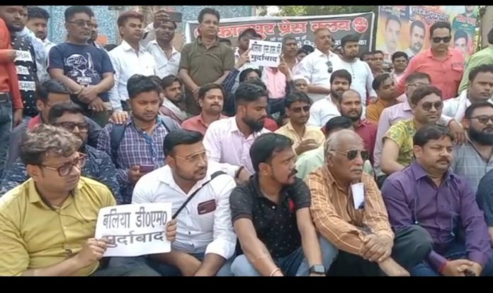 कानपुर बलिया में पत्रकारों की गिरफ्तारी को लेकर कानपुर के पत्रकारों ने किया विरोध प्रदर्शन एसीपी, एसीएम को दिया ज्ञापन उत्तर प्रदेश के बलिया जिला प्रशासन द्वारा यूपी बोर्ड परीक्षा में पेपर लीक मामले में बलिया जनपद के तीन पत्रकारों की गिरफ्तारी और कानपुर में पांच पत्रकारों के खिलाफ मुकदमा दर्ज करने को लेकर जगह जगह जनपदों में आक्रोश देखने को मिल रहा है वही आज कानपुर में भी सैकड़ो की संख्या में कानपुर प्रेस क्लब के नेतृत्व में पत्रकारों की रिहाई के लिए राज्यपाल, मुख्यमंत्री को संबोधित ज्ञापन देकर बलिया प्रशासन की निंदा की सैकड़ो की संख्या में पत्रकारों ने सड़क पर उतर कर बलिया प्रशासन के खिलाफ जमकर नारेबाजी करते नजर आए कानपुर प्रेस क्लब अध्यक्ष अवनीश दीक्षित और कानपुर प्रेस क्लब के महामंत्री कुशाग्र पांडे की ओर से मांग की गई कि बोर्ड परीक्षा में पेपर लीक मामले में गिरफ्तार किए गए पत्रकार की जल्द से जल्द रिहाई की जाए और कानपुर में पत्रकारों पर दर्ज मुकदमों की जांच करके जल्द से जल्द मुकदमों को समाप्त किया जाए नहीं तो पूरे प्रदेश में पत्रकारों द्वारा जबरदस्त तरीके से विरोध कराया जाएगा