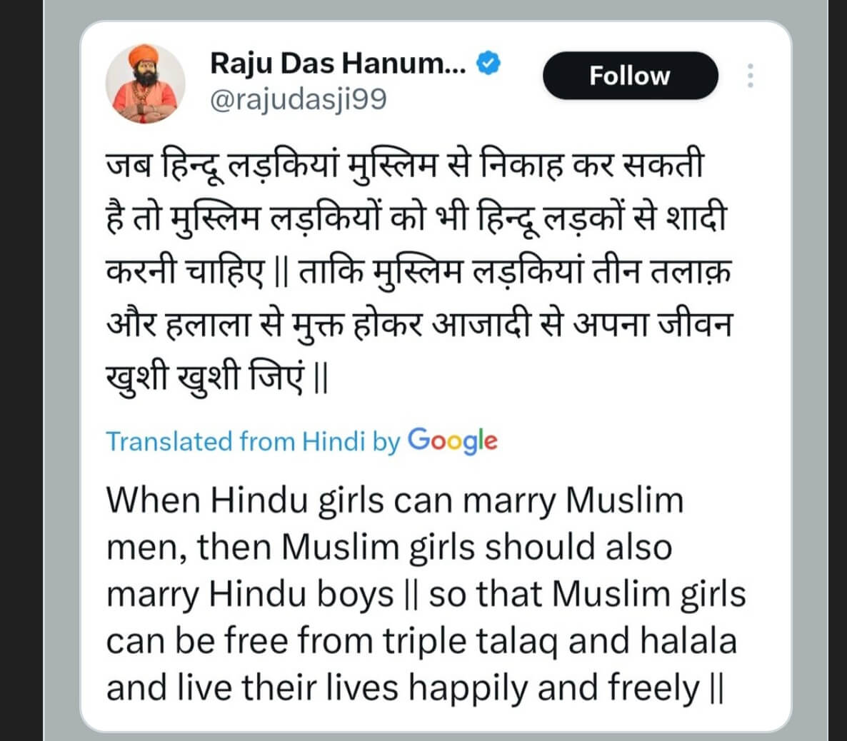 अयोध्या के संत राजू दास की पोस्ट पर मचा बवाल ? हिंदू लड़कों से शादी करें ?